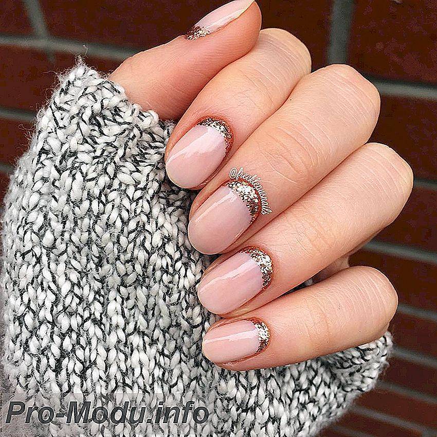 Френч миллениум оправдывает свое название на все 100%, особенно в красочном 2018 году. Ведь в этой технике много глиттера и блесток. Ими покрывают всю улыбку. Кончик может быть любым: золотым, серебряным, фиолетовым, синим, красным, зеленым. Блестки должны быть мелкими и плотно прилипать друг к другу. Самое главное, чтобы при попадании солнечных лучей на покрытие, оно роскошно переливалось. Подложка в этом дизайне остается бежевой или нюдовой. Не забудьте нанести финишный топ, ведь он выровняет ноготь и сгладит его поверхность. Отличное решение для вечеринок, любого торжества или встречи Нового Года. Маникюр идеально подойдет под вечернее короткое или длинное платье. Когда так хочется торжества и праздника, то стоит присмотреться к миллениуму.