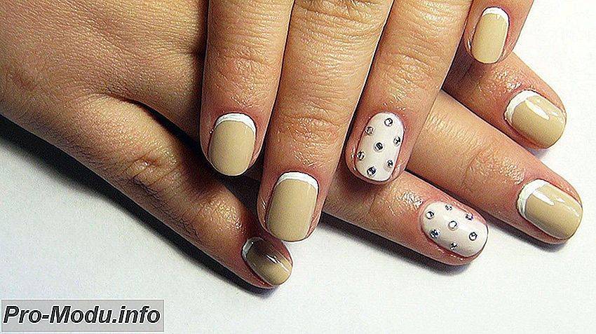- Декор из стразов чаще всего используется для получения вечернего маникюра. Чтобы украсить лунный френч, лучше выбрать стразы небольшого размера. Обычно они приклеиваются вряд по границе линии луны. Можно украсить стразами не границу, а саму лунную зону. Если выбрать стразы разного размера и расцветки, то они будут казаться не просто блестящей полоской, а настоящей ажурной композицией в этом месте. Иногда из трёх стразов делается фигура в форме треугольника, которая венчает вершину линии луны.