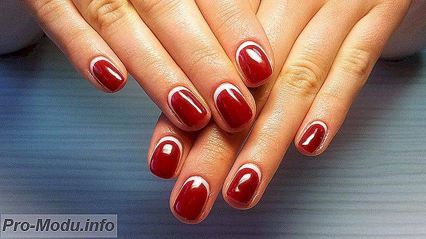 Перед созданием любого дизайна нужно сделать маникюр, после чего обезжирить ногти. Нанести базу для гель-лака. Высушить в УФ-лампе. Покрыть ногти тем цветом гель-лака, который будет просвечиваться возле кутикулы. Гармоничнее всего смотрятся золотистый, серебристый, светло-розовый, белый. Высушить под лампой. Нанести второй слой и также высушить. Немного отступив от кутикулы и боковых валиков, прокрасить следующий слой – ярко-синим, черным, красным или другим контрастным оттенком