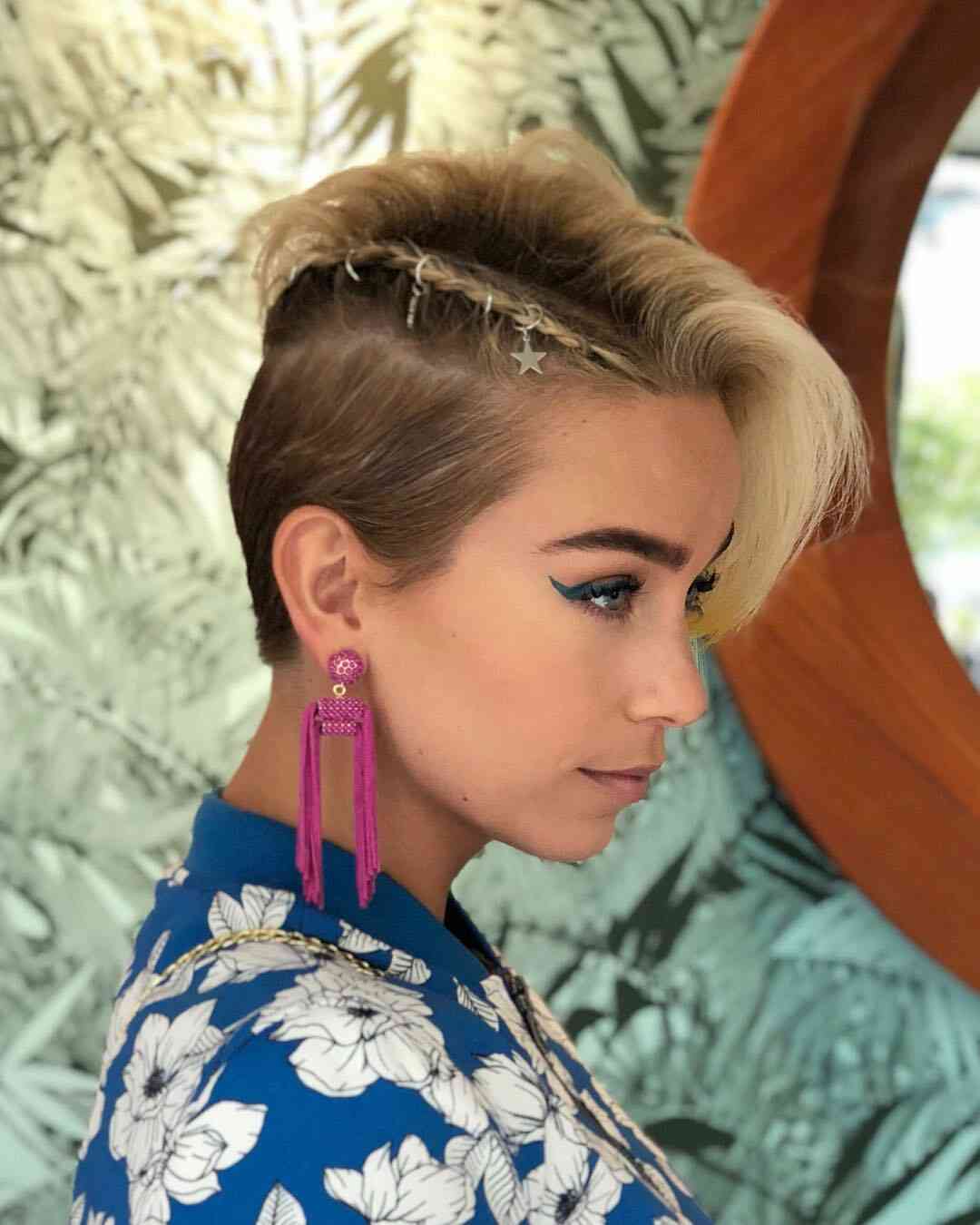 Бесспорно, такие индивидуалки как Майли Сайрус и не смогли пропустить ЭТО. Зачесанные вверх короткие волосы, чуть сплюснутые по центру – это всего лишь прическа, а стрижка при этом остается обычной – Том Бой или Боб, например. Такую прическу смогут себе позволить только очень экстравагантные личности, но поверьте, вас сразу с ней заметят и оценят. Не забудьте основное правило – если прическа небрежная, все остальное должно быть идеально!