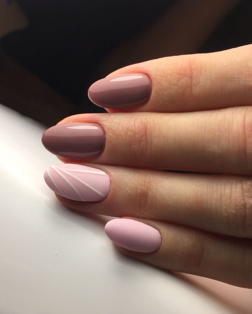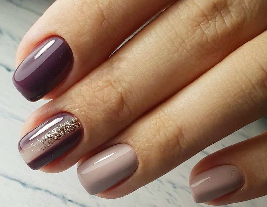 Этот оттенок всегда входит в топ самых популярных для делового нейл-арта. Он прекрасно комбинируется с нюдовыми, кремовыми тонами, а также с полосками, точками, абстракцией и геометрией.