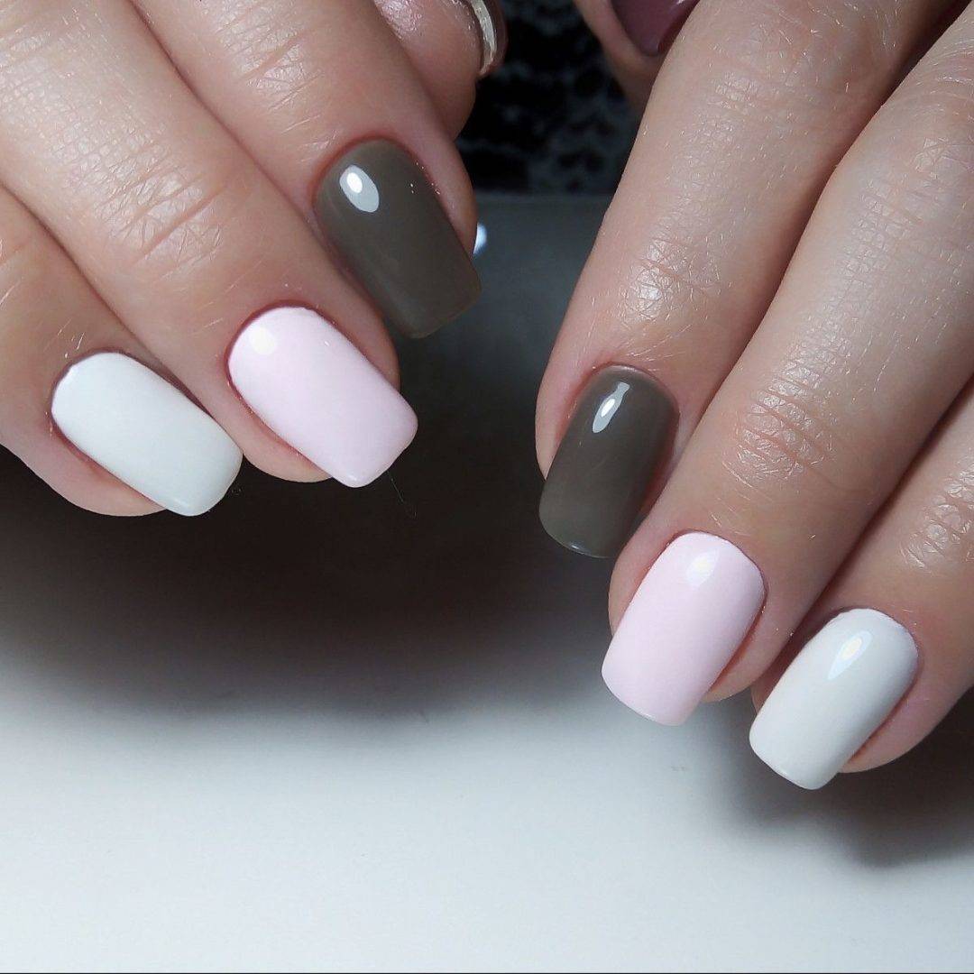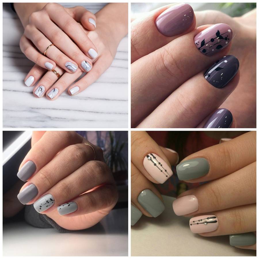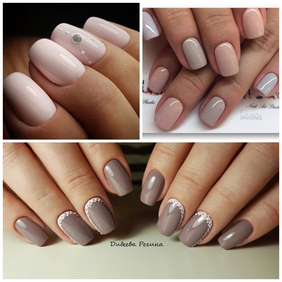 Пепельно-лавандовый, коралловый, оливковый и серый — выглядят красиво и неярко и станут прекрасной идеей для маникюра в офисном стиле. Элегантные и сдержанные ногти для работы можно дополнить легким блеском жемчужной втирки или несколькими стразинами, которые отлично оттеняют приглушенные тона.