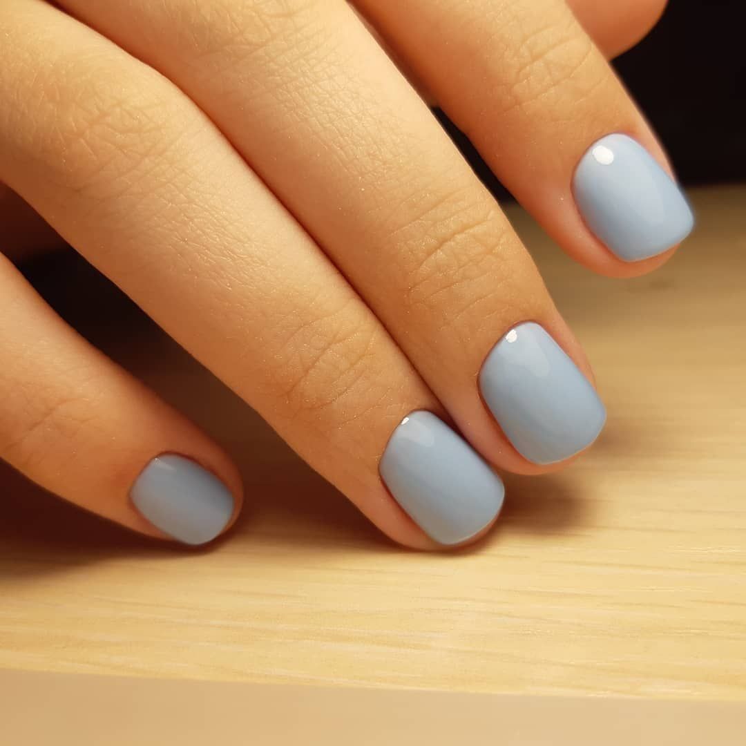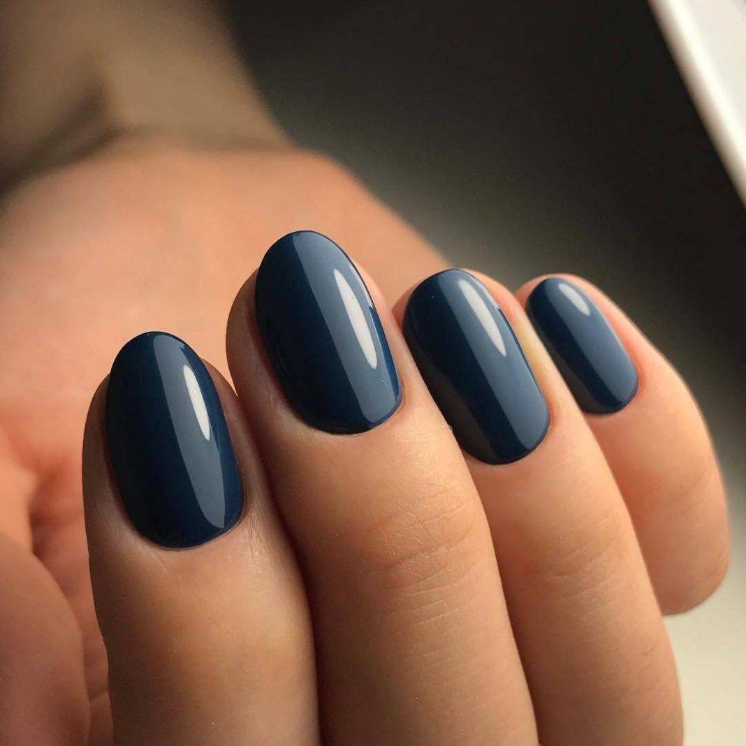 Палитра синих оттенков очень богата. Лучше выбирать из неё самые сдержанные тона, которые будут сочетаться с ахроматическими или нюдовыми цветами. В качестве декора можно использовать небольшое количество серебряного или золотого лака.