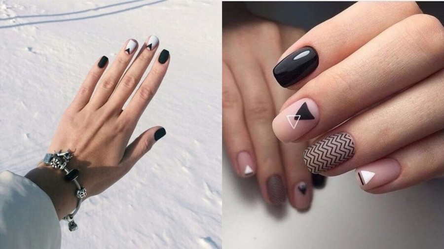 - нюдовая основа с чёрными, либо яркими дополнениями в виде узоров;
