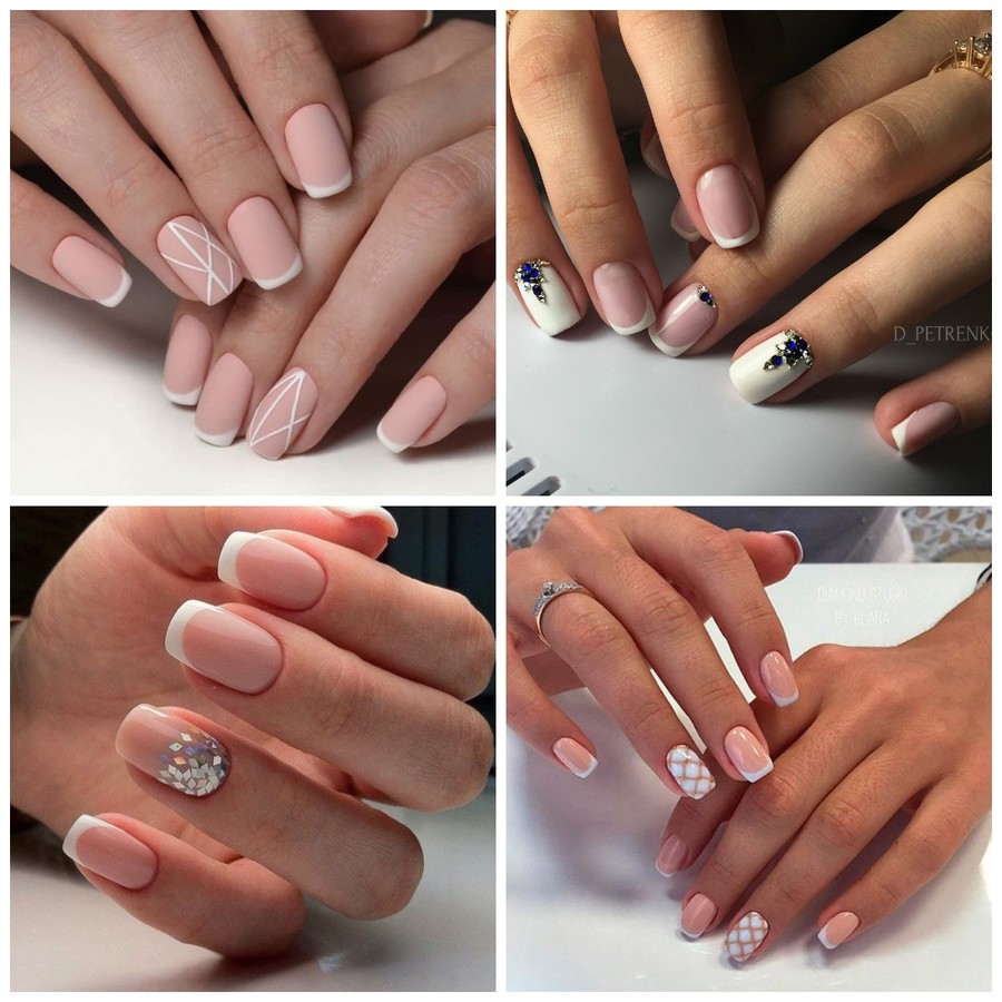 Такой маникюр – отличный завершающий штрих строгого и лаконичного делового образа. При желании его разбавляют современными вкраплениями: украшают прозрачными стразами, меняют форму «улыбки».