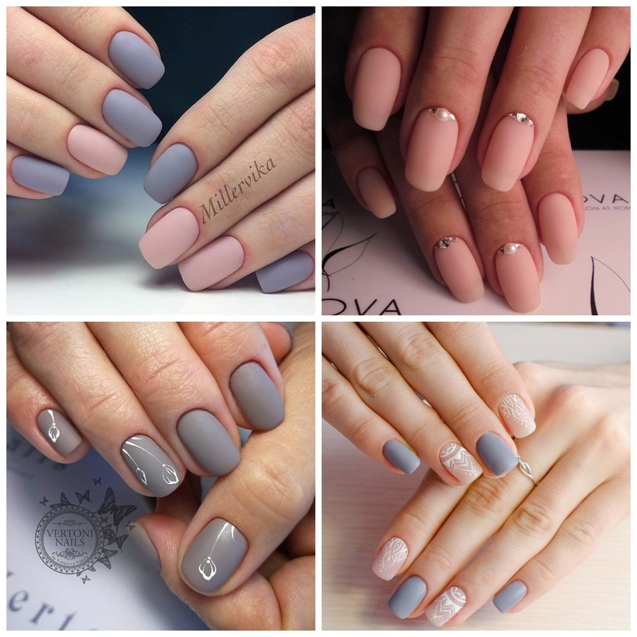 Бархатистость структуры покрытия – один из главных трендов в офисном нейл-арте. Матовый эффект обеспечивает получение маникюра с кашемировой текстурой.