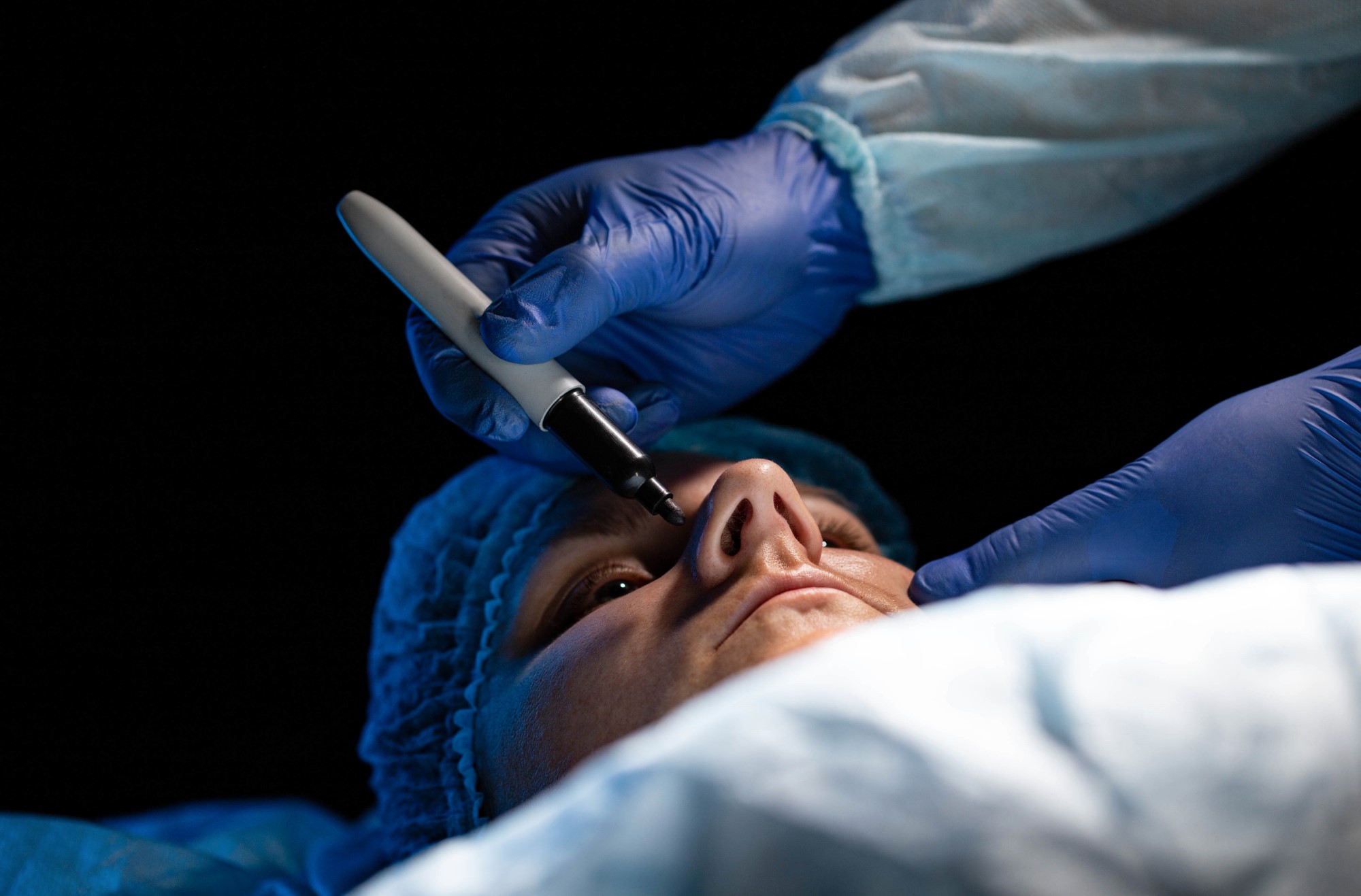 - Маркером размечается нос, и пациента отправляют на коррекцию.