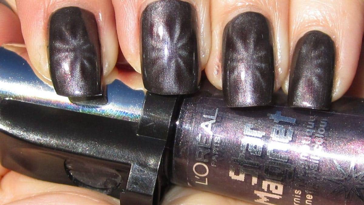 Все мы с уроков физики знаем, что железо притягивается к магниту. Ученые воспользовались этим принципом, и внедрили в обычный состав лака микроскопические частицы металла. В этом и все волшебство: магнит определенной формы, который подносится к ногтю, накрашенному специальным лаком, деформирует частички железа в определенный узор. Магниты можно найти с самыми разными рисунками: звездочки, полоски, волны, продольные линии. Это хорошая альтернатива жидким камням, бусинкам и прочим украшениям, которые могут отвалится при некачественном маникюре.