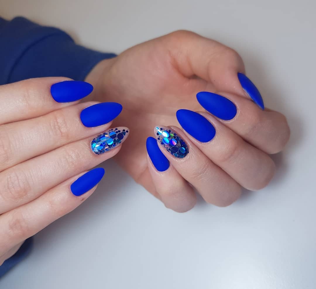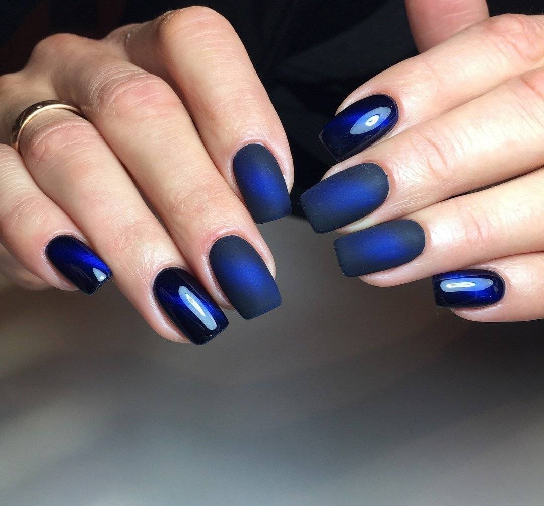 С приходом осени и зимы набирают популярность более темные оттенки. Маникюр осень-зима 2022 пишется темно-синими чернилами. Интенсивные оттенки, такие как ультрамариновый синий, матово-синий сапфир или гипнотический безграничный бирюзово-синий будут модным трендом маникюра на осень 2022.