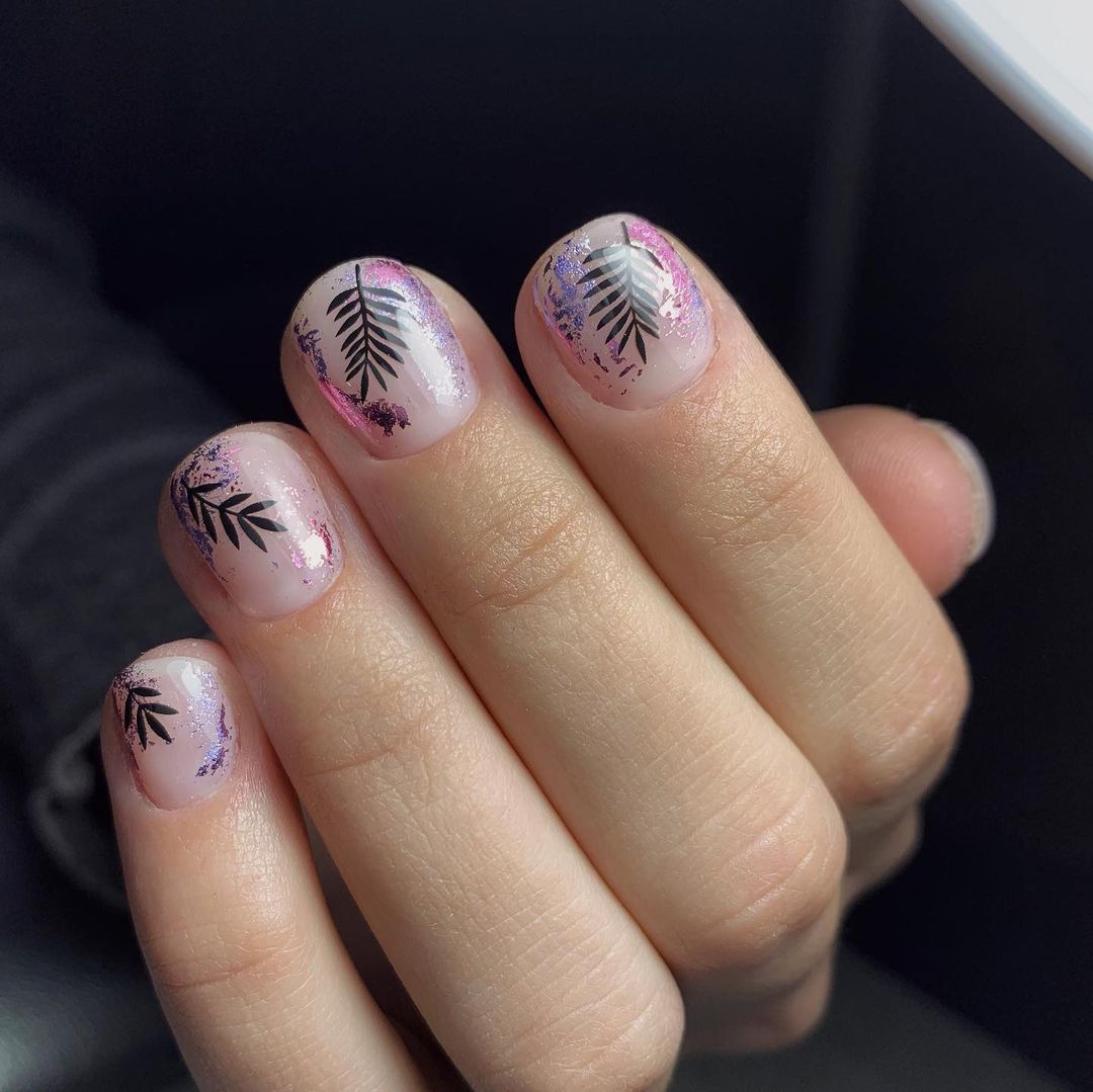 Рисунки можно сделать акриловыми красками, цветными или блестящими лаками, с помощью тонкой кисти. Техника штамповки и различные наклейки также востребованы сегодня в маникюре. Среди популярных изображений осеннего сезона 2020 — цветочные рисунки, геометрические направления, сезонные изображения, надписи, герои мультфильмов, тонкие завитки, полоски, горошек и множество других интересных предложений.