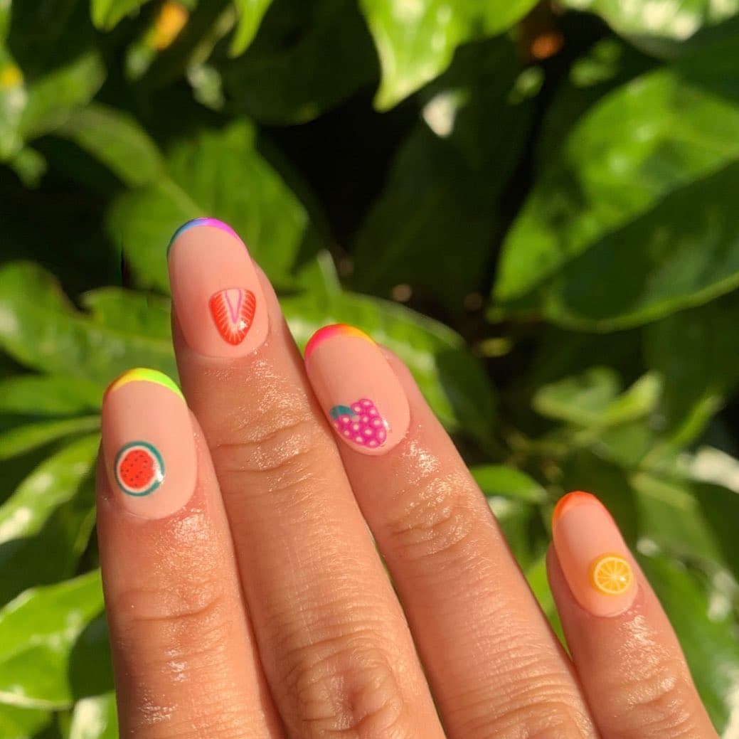 Весна ассоциируется с цветами, а лето — со спелыми ягодами и фруктами. Эту приятную ассоциацию будет уместно поддержать нейл-дизайном. Долькам сочного апельсина, арбуза или киви самое место не только на вашем столе, но и на ваших ногтях.