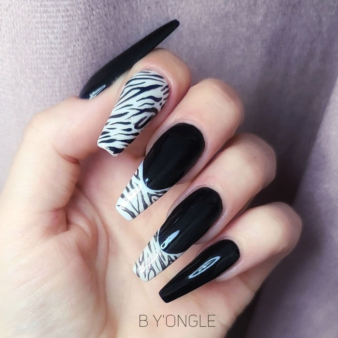Супергорячий тренд – френч с рисунком, имитирующим животный принт. Зебра, жираф, леопард – выбирайте самостоятельно. Все эти виды френча на ногтях смотрятся сногсшибательно!