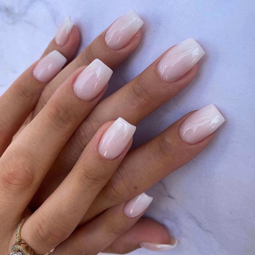 Французский маникюр омбре предполагает градиентное окрашивание одним или несколькими оттенками лака. Такой принт выглядит слегка размытым, его лучше всего сочетать с наращиванием ногтей. Если интересует стильный френч на острые ногти 2023, то омбре в модном оттенке точно подойдет.