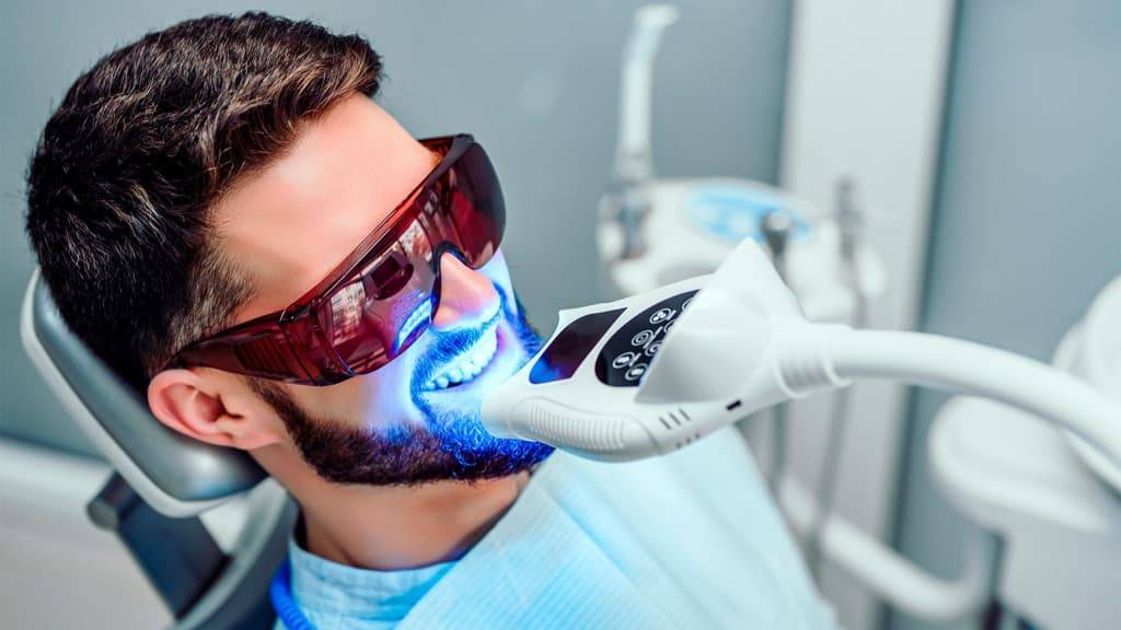 Холодное отбеливание, как уже говорилось выше, — это тоже фотоотбеливание, так как предполагает применение геля (реагента) и света (катализатора). Но использование именно холодного света галогенной или же диодной лампы — большой бонус этой процедуры. Преимущество в том, что низкая температура световых волн позволяет отбеливать зубы, не повреждая зубную эмаль и не доставляя болезненных ощущений. Не волнуйтесь: во время процедуры ваши зубы не будет сводить от холода. Определение «холодное» объясняется применением голубого света, который не нагревает зубную эмаль, в отличие от отбеливания горячим светом светодиодной лампы, небезопасного для зубов и слизистой рта.