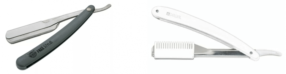 Данные изделия применяются для окантовки, филировки, непосредственного бритья, др. Известно несколько разновидностей бритв: