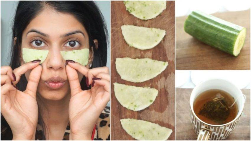 - свежий огурец и картофель – кружочки этих овощей быстро избавляет от следов усталости и мешков под глазами,