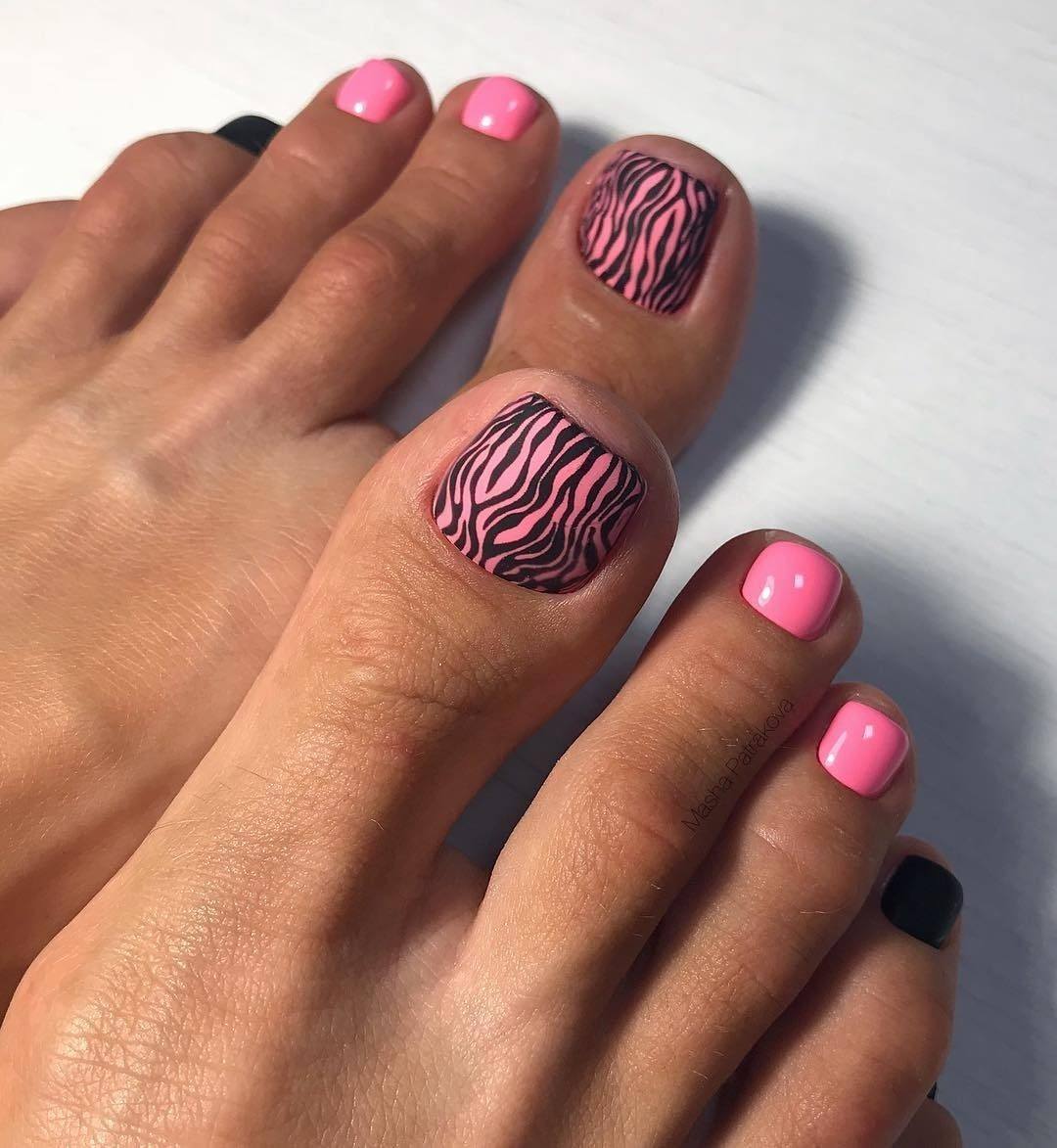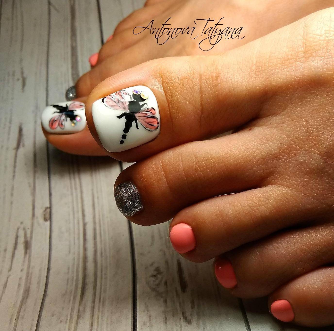 - рисунки – ногти на больших пальцах ног могут стать холстом для художника, в этом сезоне модными остаются рисунки в мультяшном стиле, надписи, примитивные силуэтные изображения, абстракция;