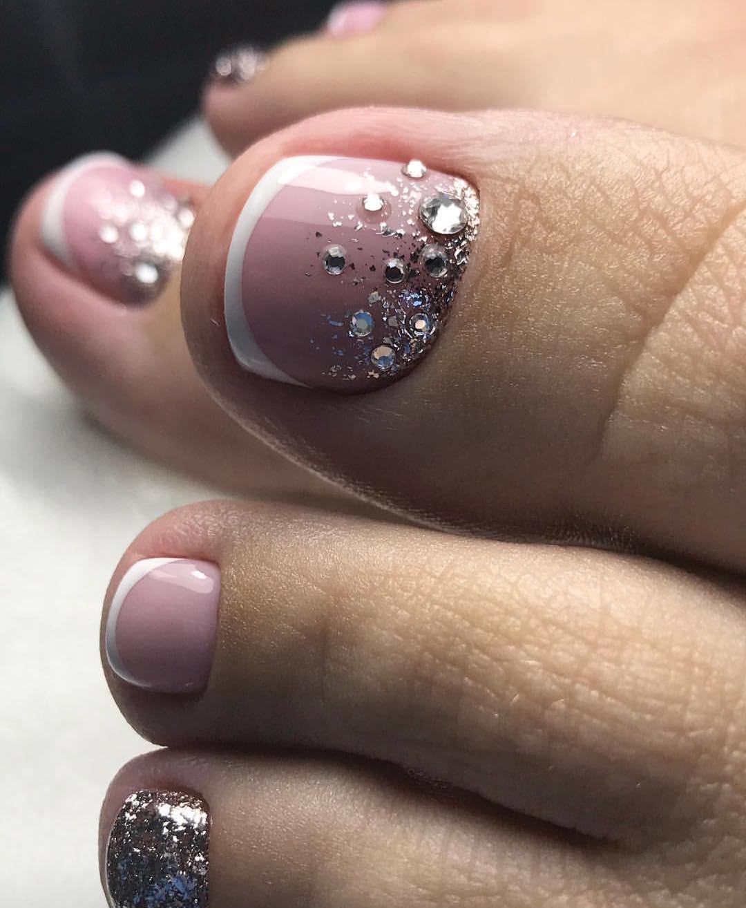 При использовании декоративных элементов в педикюре важно соблюдать умеренность. Чрезмерное количество страз, конфетти и бусин выглядит нелепо
