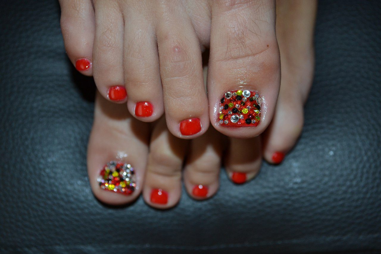 В сочетании с красным гель-лаком, любой из этих дополнительных элементов поможет создать стильный педикюр.