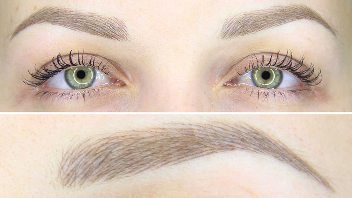 - Волосковая прокраска. Один из способов получить эффект естественных бровей. Для этого способа используется тонкая игла, краска наносится небольшими штрихами. Главной особенностью является то, что для такого макияжа не требуется удаление «своих» бровей;