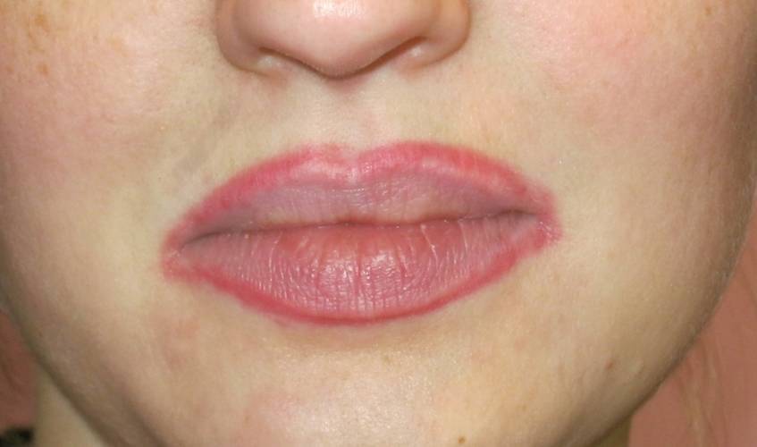 - Следует убедиться, что противопоказаний нет, дальше – проверка на аллергические реакции, выбор формы губ и цвета пигмента.