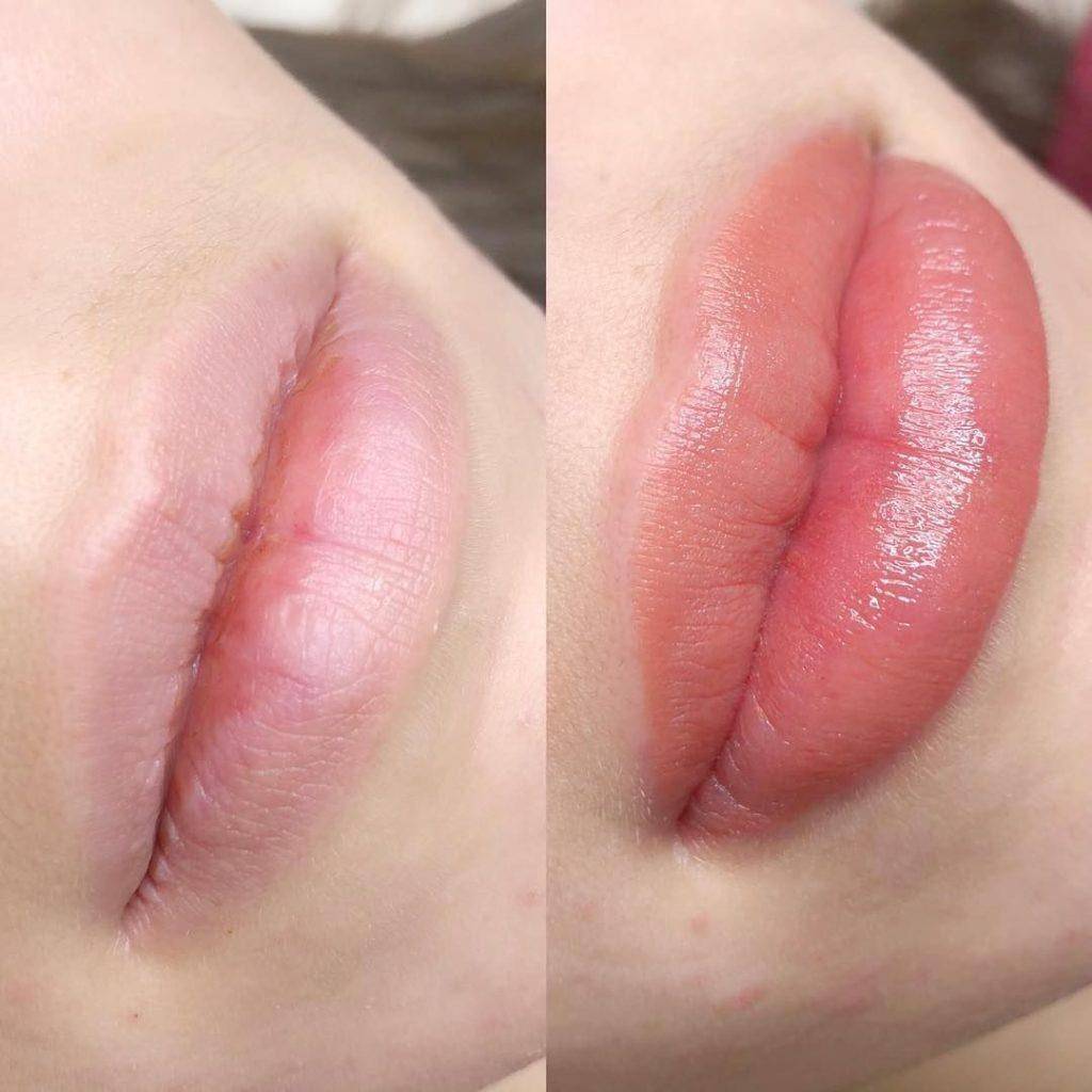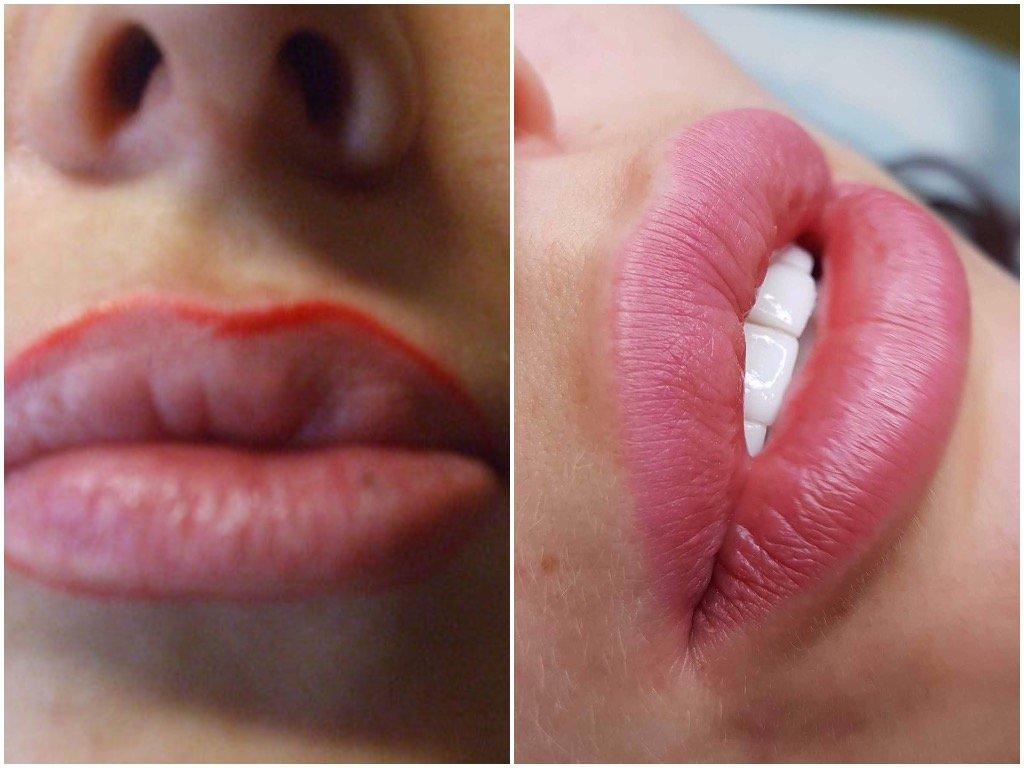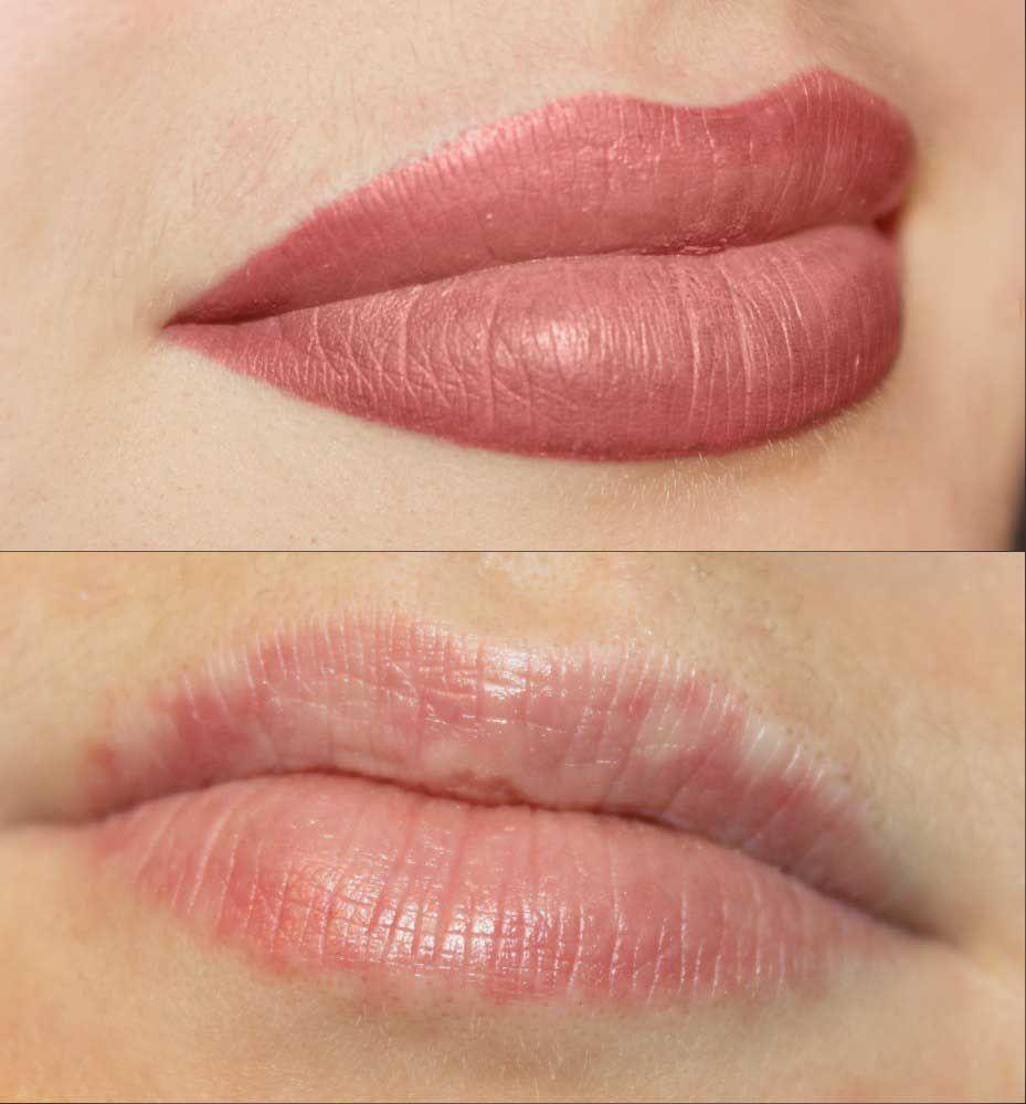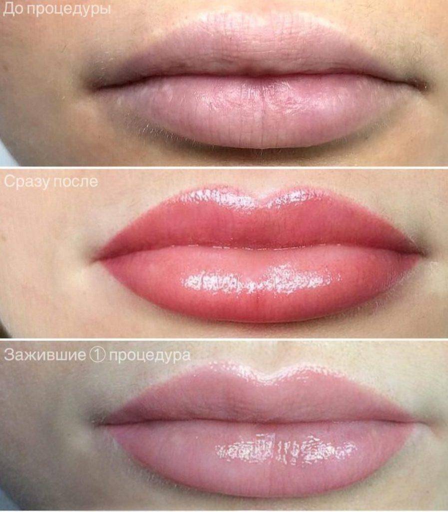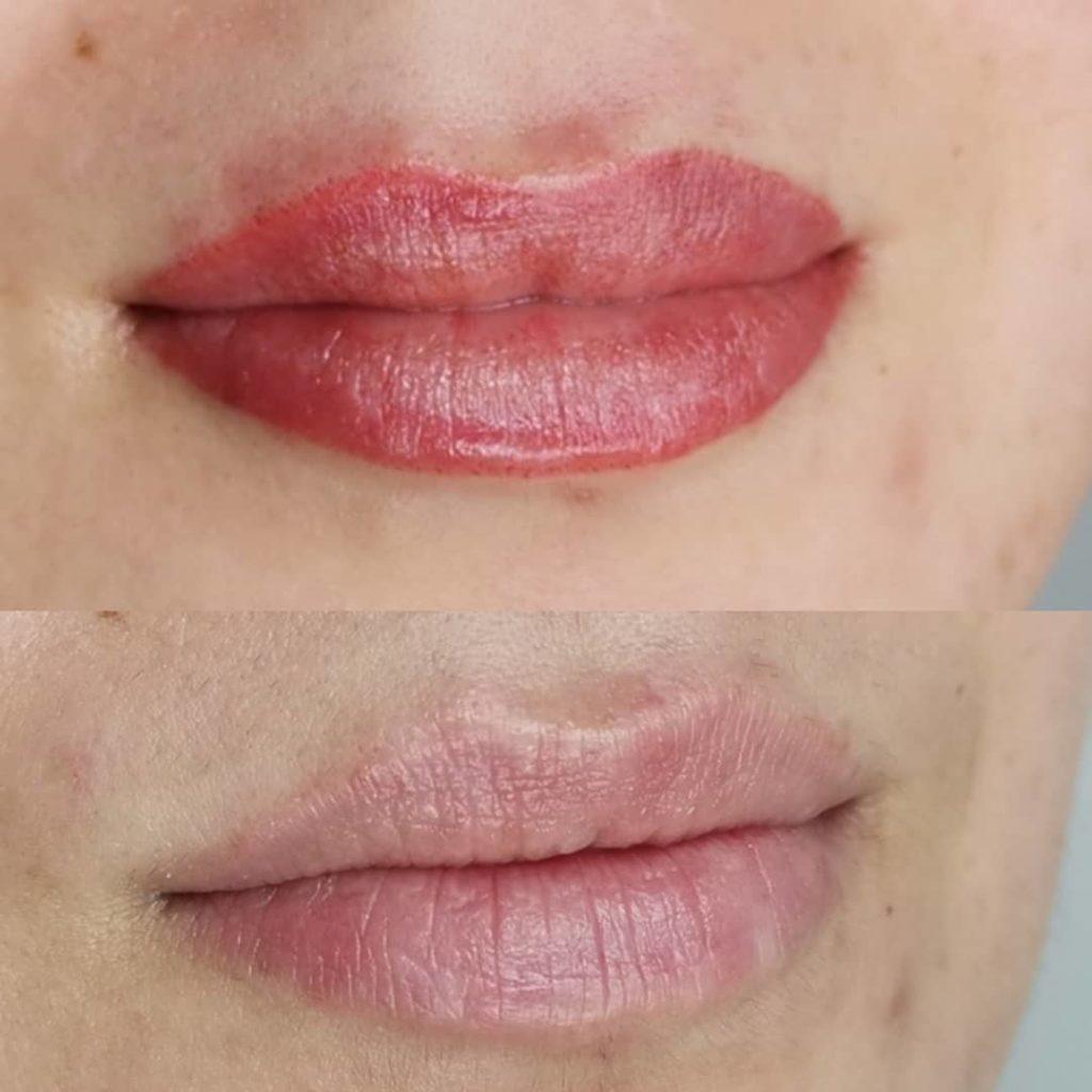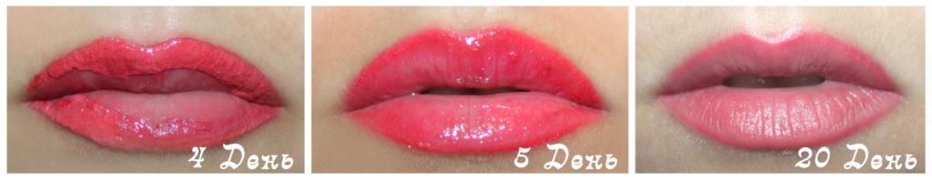 После процедуры губы будут воспаленными и припухлыми. Это нормальная реакция на внедрение красящего пигмента. Через сутки отек спадет, а появится корочка, которую нельзя сдирать. Мастер может назначить специальные растворы, которыми стоит промокать кожу губ. Через несколько дней корочка сойдет сама, а полное заживление наступит через 2 недели.