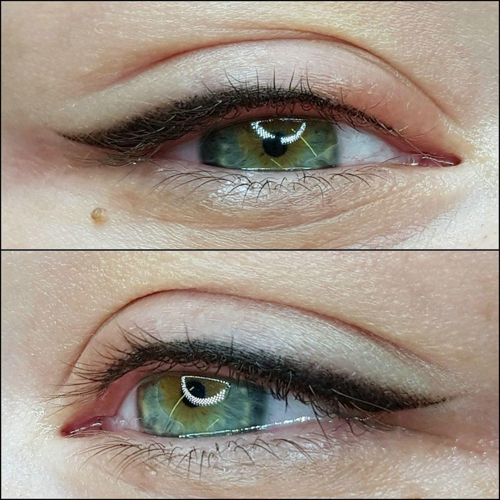 Кожа век тонкая, чувствительная. У некоторых по причине неприятных ощущений глаза при процедуре татуажа слезятся, другие только чувствуют небольшое покалывание поверх глазного яблока.