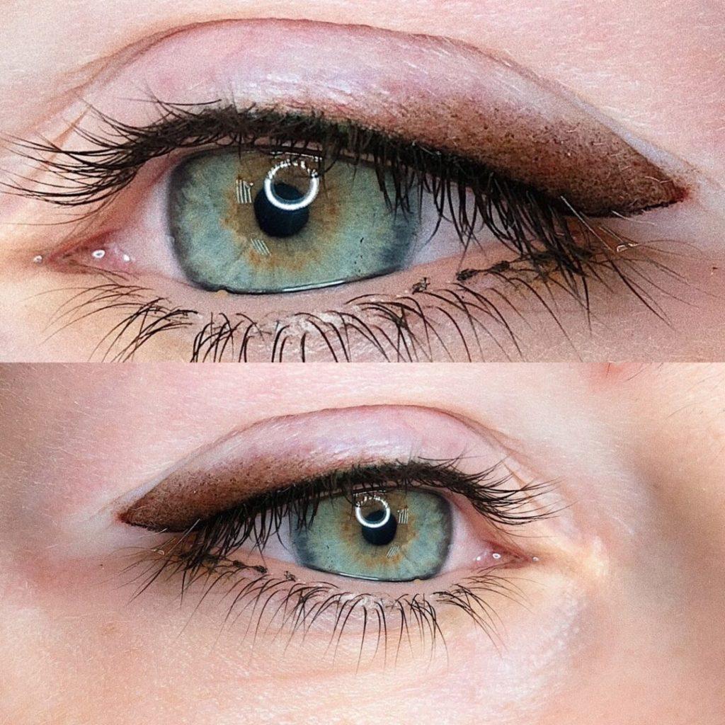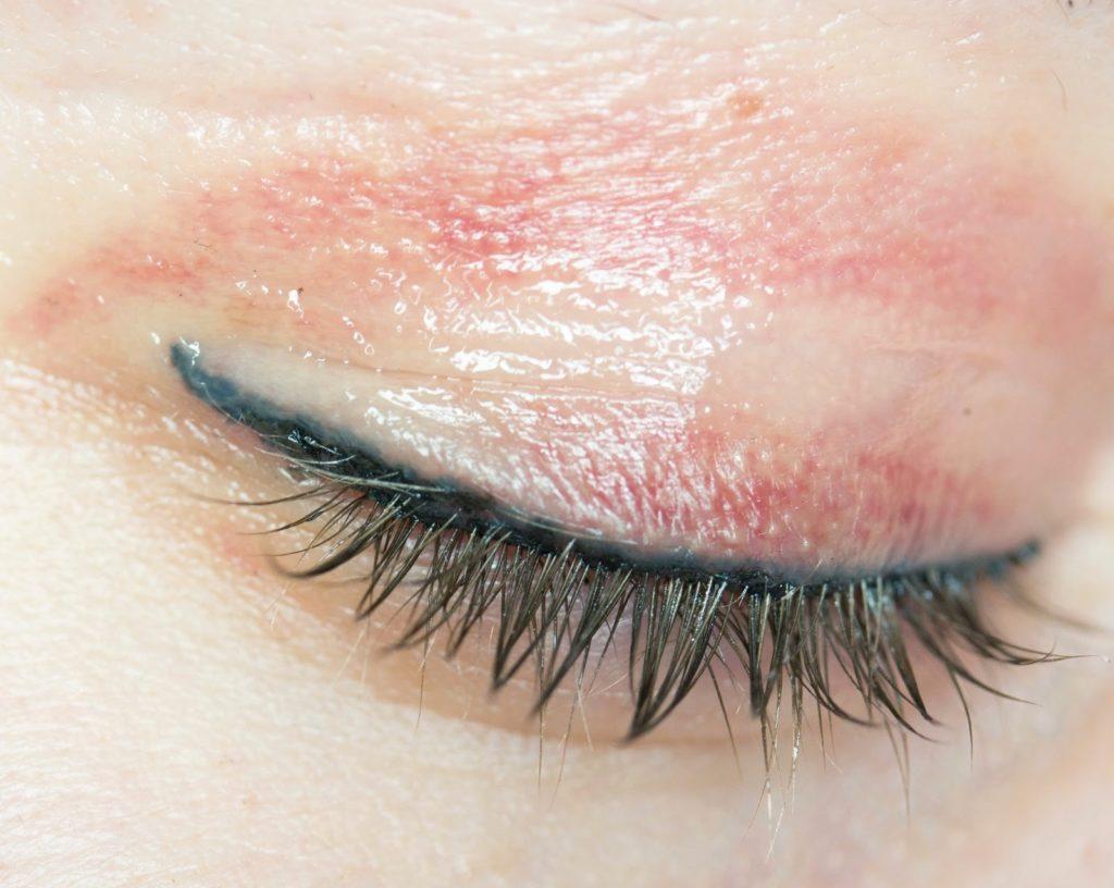 Отечность и покраснение век — это нормальные явления после данной процедуры. Глаза могут слезиться, поэтому мастера порекомендуют специальные умывалки, которые позволят снизить болезненные и неприятные ощущения. Застывшая корочка на веках отпадет через 3 дня, а полное заживление век произойдет через 2 недели.