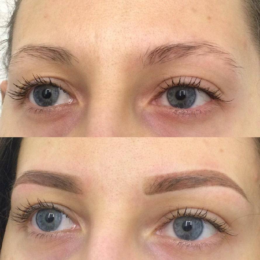 - после внесения пигмента брови изначально кажутся идеальными – линии тонкие, ровные. Это происходит потому что кожа «сжимается» в результате воздействия на травму, а в конечном итоге расслабляется и линии могут «поплыть».