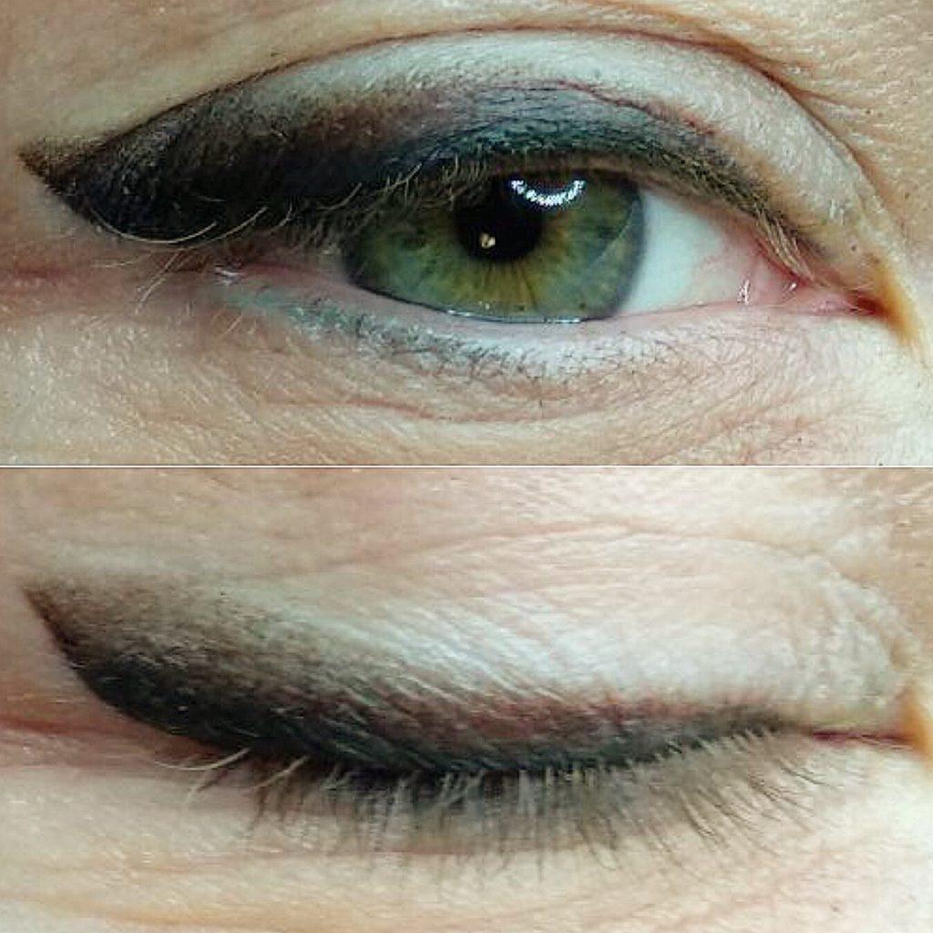 - Если у вас опущены уголки глаз или глаза маленькие, то перманентный макияж век со стрелками может визуально изменить эти недостатки.