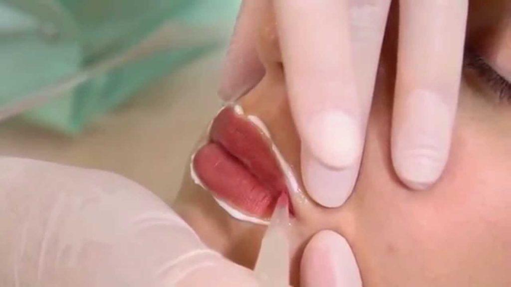 - После согласования с клиентом формы и палитры обезболивается область работы. По желанию клиента губы могут не обезболиваться.