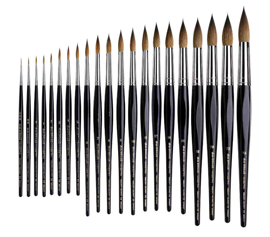 Кисти изготовляются из самых разных материалов, благодаря чему существует целый ряд по упругости: от очень мягких до очень жестких, но для работы с водными красками используют синтетические кисти.