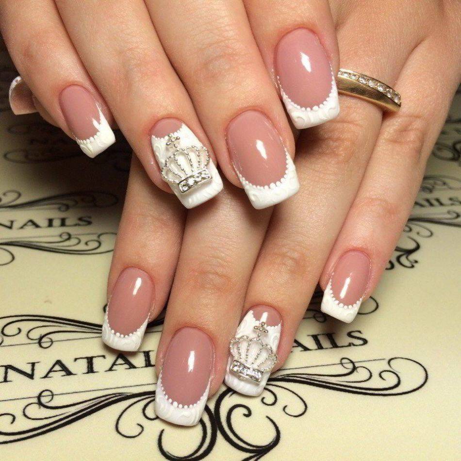 - Wedding dress — три оттенка, наиболее часто используемых для свадебного маникюра — молочный оттенок, телесный и белый с легким перламутром. Нежный, элегантный образ с этими цветами гарантирован!