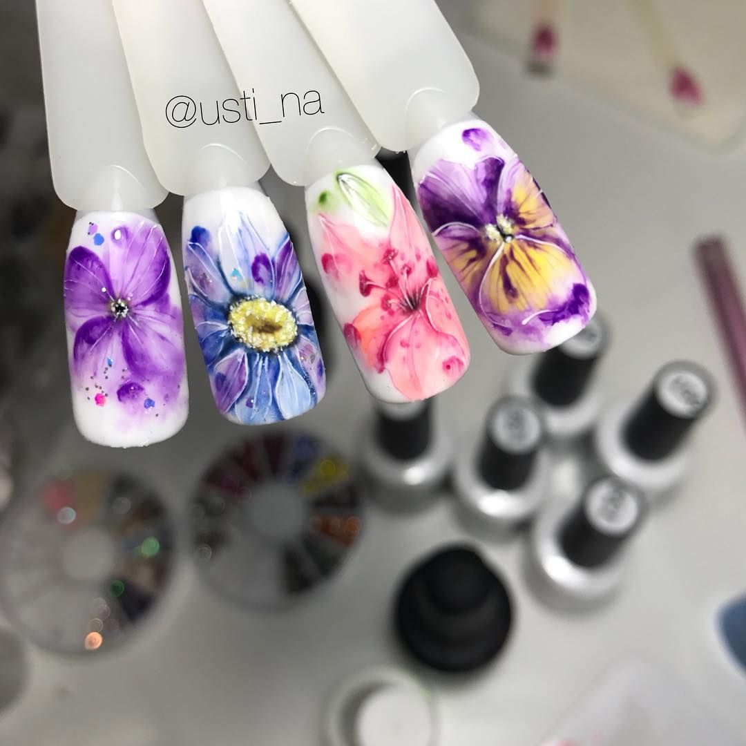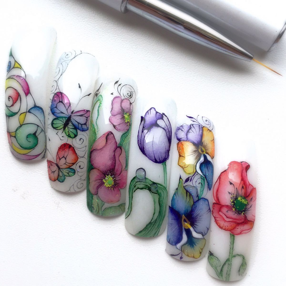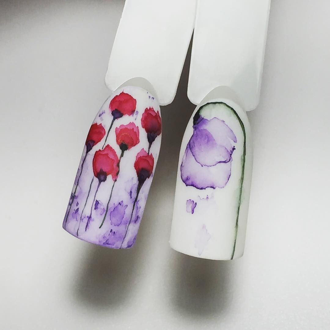 Маникюр с рисунком акварелью: как правильно наносить нужный орнамент?