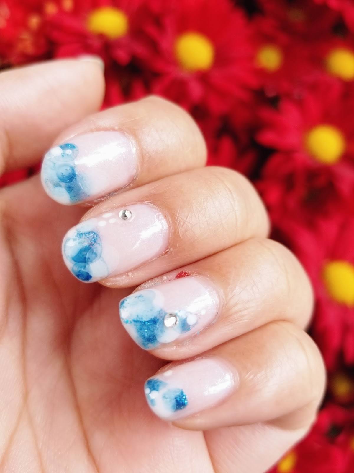 - Мытье. Эта техника позволяет получить яркие, насыщенные цвета. Пастельный оттенок наносится на ногти и обильно разбавляется водой. После высыхания первого слоя наносится второй и третий слой. Таким образом, полутона станут более глубокими.Примечание: Нет необходимости наносить четвертый слой.