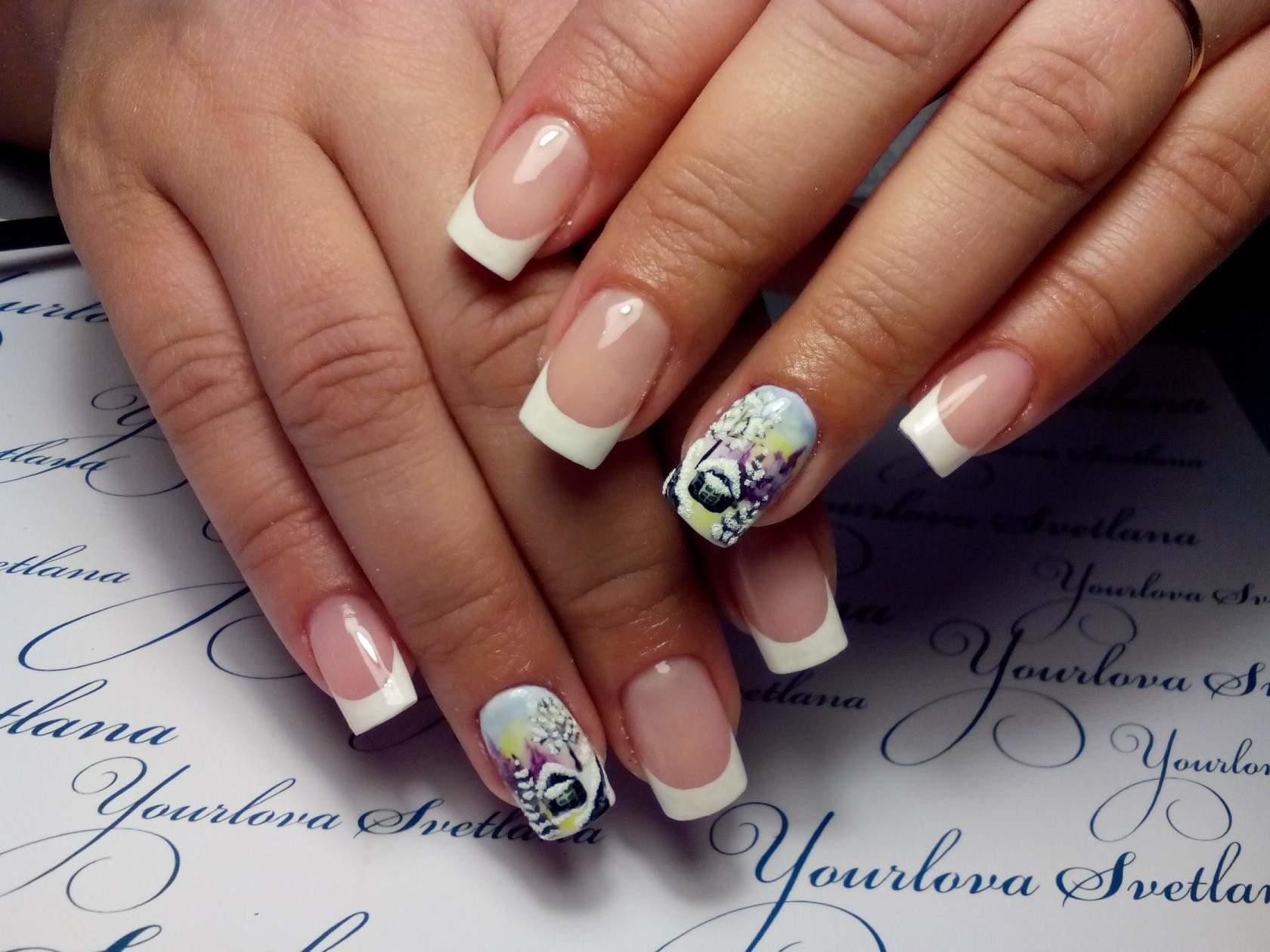 Стильное сочетание френча с акварелью. Такой маникюр смотрится нежно, женственно и оригинально.