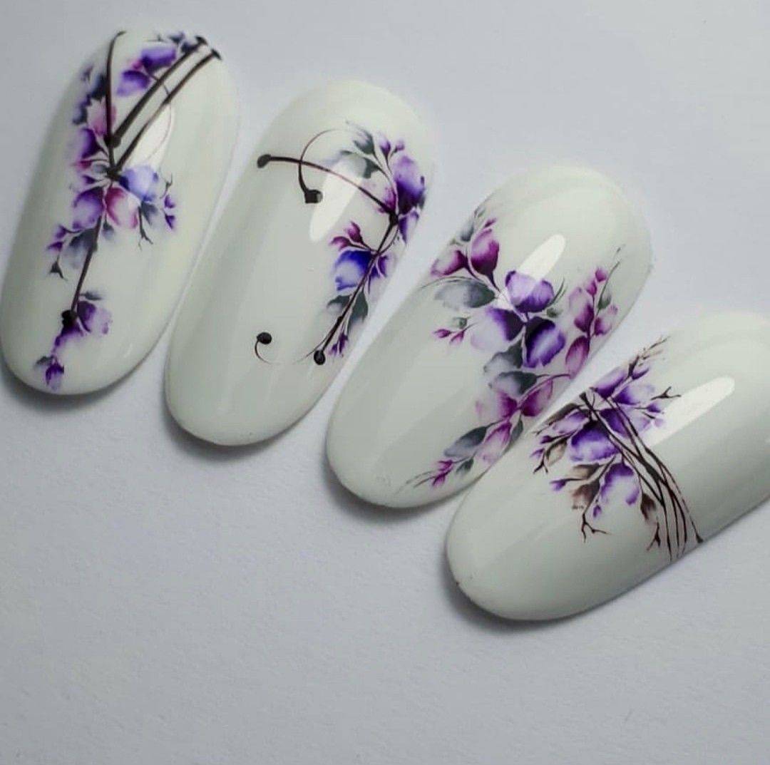 - Сейчас актуально создавать акварельные рисунки на белом гель-лаке. Это сделает рисунок более выразительным.