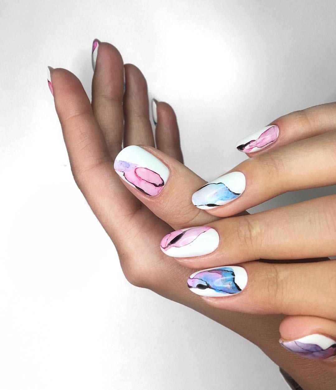 У каждого мастера свои любимые образы с акварельными гель-лаками, да и в целом вариантов узоров и дизайнов великое множество. Рассмотрим самые простые и быстрые, для создания маникюра самостоятельно на дому.