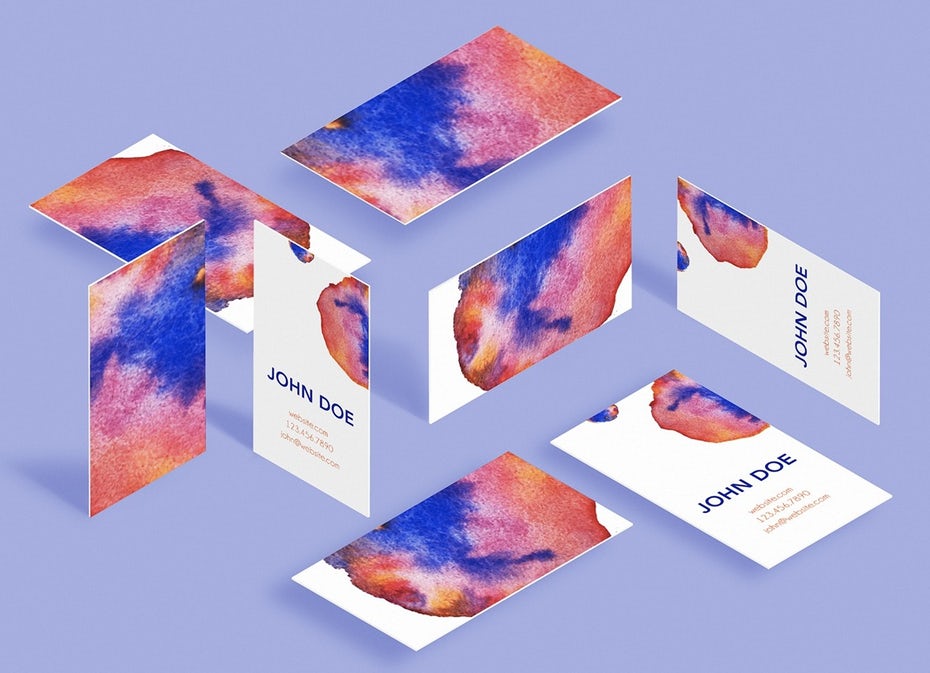 Для визитных карточек тенденция акварельного дизайна делает идеальный фон — таким образом эффект тонкий и не отнимает от контактной информации на карте.