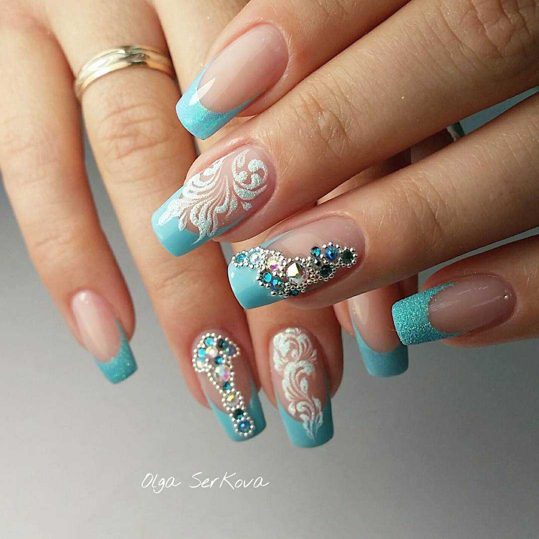 Большинство барышень обращаются к флакончику с бирюзовым гелем лишь в моменты подготовки к отпуску, незаслуженно игнорируя его все остальное время. А ведь бирюза не менее роскошно смотрится и в зимних дизайнах. Отличное тому подтверждение — картинки ниже.