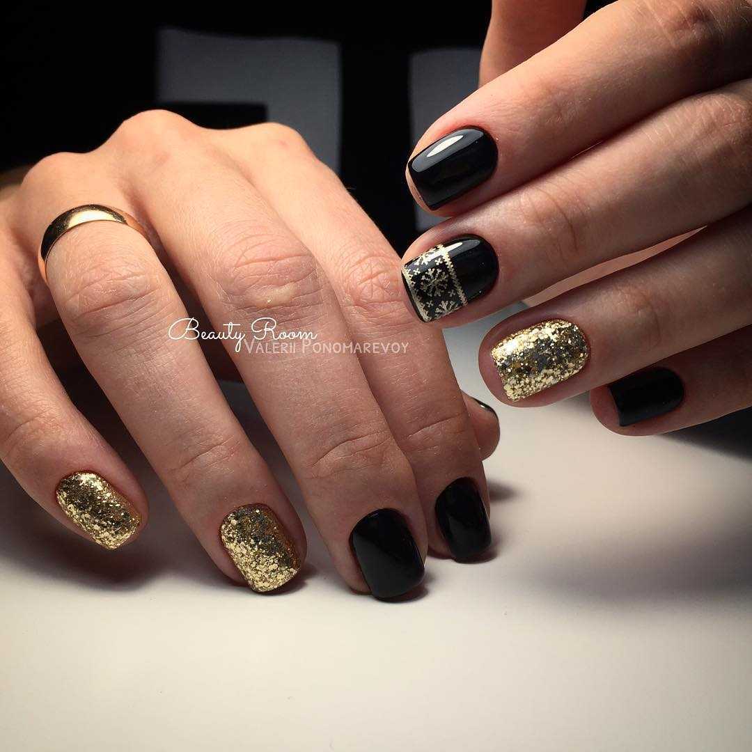 Не только колечка или сережки, но и золото ноготков дополнит образ модницы. Единственный нюанс — блестящий шеллак весьма проблематично удаляется с ногтевой пластины.