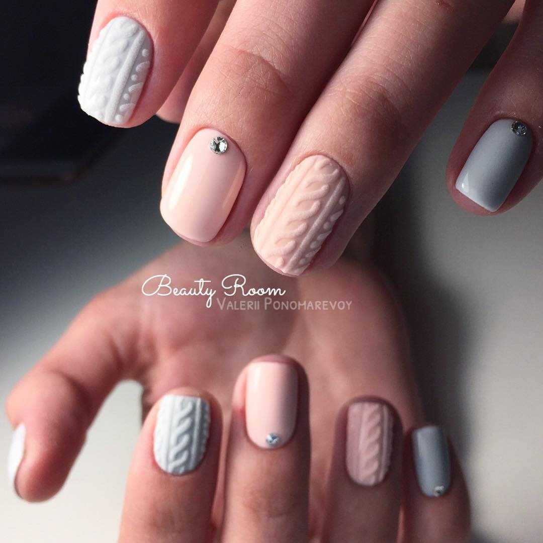 Эффект объемной вязки свитера очень красиво и изысканно смотрится на ногтевых пластинах любой формы и длины. Первые ощущения, с которыми ассоциируются такие узоры, — это тепло и уют, мягкий шарф, плед и кружка ароматного какао или кофе. Для создания вязаного дизайна используются в основном нежные или пастельные оттенки, хотя не менее интересно смотрятся темные и глубокие цвета. Основа под рисунок может быть матовой или глянцевой, все зависит от ваших предпочтений.