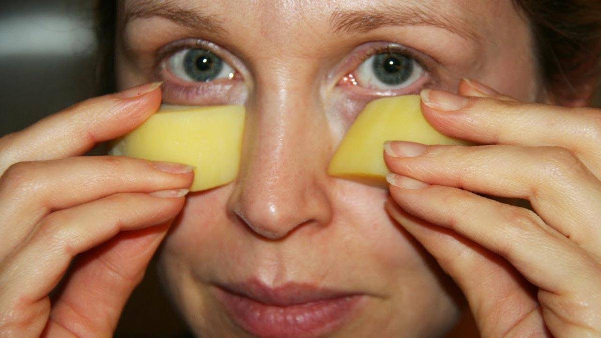 Еще в раннем детстве многим из нас родители или бабушки прикладывали к синякам дольки сырого картофеля. Сегодня этот народный способ снять отек по-прежнему актуален. Кто-то рекомендует использовать тонко нарезанные ломтики, кто-то — натереть картофель на мелкой терке и завернуть его в марлю, после чего приложить на место ушиба и держать 5 минут. После удаления картофельного компресса кожу рекомендуется протереть чистой влажной салфеткой, чтобы удалить остатки крахмала. Использовать сырой картофель как средство для снятия отека верхнего века можно не чаще пяти раз в сутки.