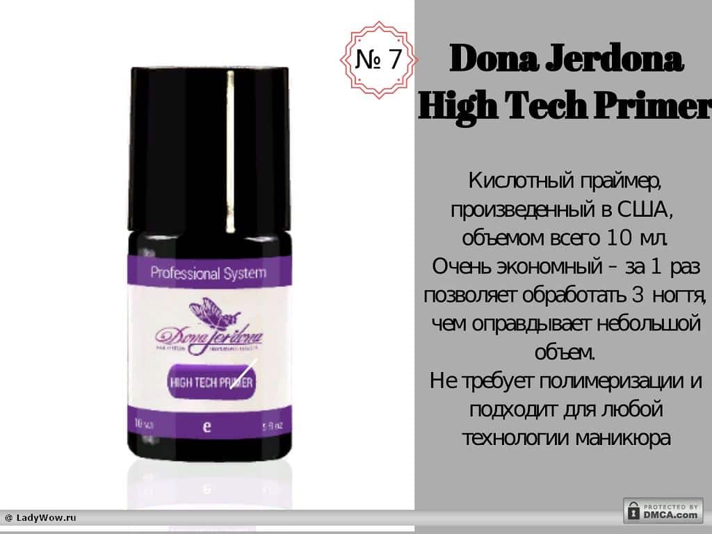 Кислотный праймер, произведенный в США. Объем всего 10 мл. Очень экономный — за 1 раз позволяет обработать 3 ногтя, чем оправдывает небольшой объем. Не требует полимеризации и подходит для любой технологии маникюра.