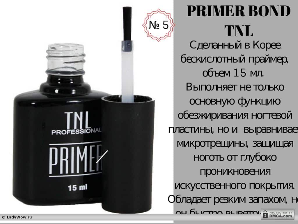 Каждый известный бренд товаров для ногтей выпускает под своим именем праймеры. Например, TNL, Kodi, Irisk, Runail, Bluesky, Grattol, Patrisa Nail, Rio Profi, NeoNail, UNO, ELPAZA, Yoko, F.O.X и многие другие. Правда в том, что праймер для маникюра достаточно примитивный продукт, нет каких-то «запатентованных» технологий его производства, влияющих на качество. Поэтому, нет смысла переплачивать за громкое имя на этикетке. Главное, чтобы праймер был подходящий для конкретной цели — кислотный или бескислотный. Помним, что расход средства минимальный и одного флакона хватит на многие годы. А далее смотрим на цену, объем и выбираем оптимальное для себя.