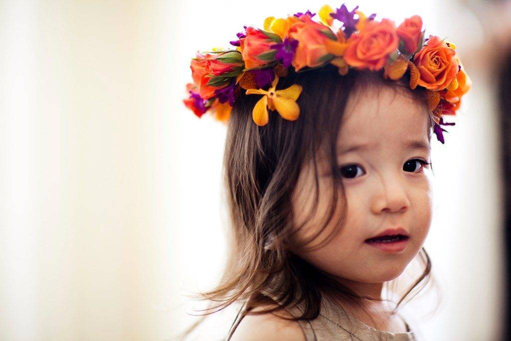 на очень короткие пряди малышке можно заколоть челку красивой заколкой с цветами