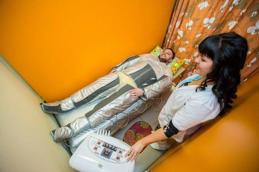 Прессотерапия (прессомассаж, пневмомассаж) представляет собой методику, направленную на стимулирование работы лимфатической системы организма при помощи воздействия на нее сжатым воздухом, подаваемым через специальные манжеты. Они быстро накачиваются до 1-2 атм. по типу морской волны.