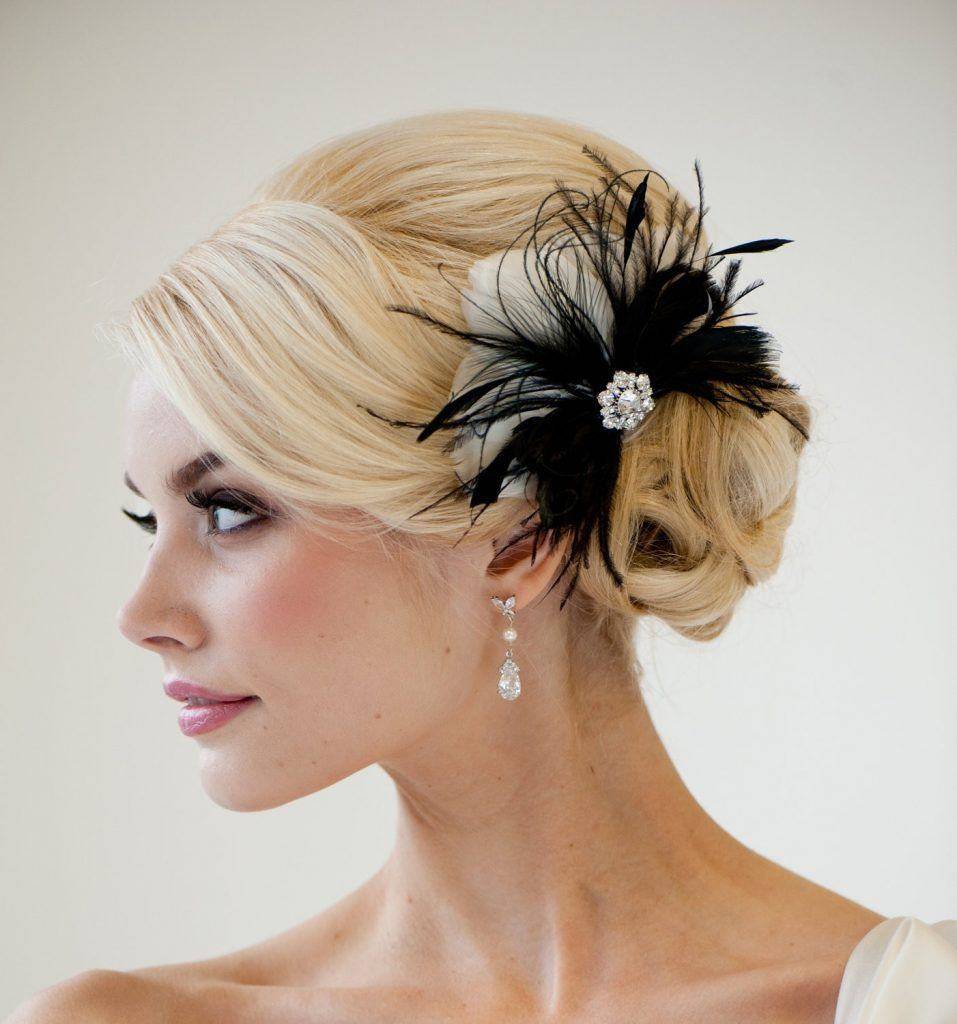 Пучок, сформированный из множества красиво уложенных локонов, смотрится изысканно, и напоминает собой традицию 30-х годов. Такой пучок отлично сочетается с вечерним платьем или деловым костюмом. А, чтобы образ был более эффектным и запоминающимся, волосы украшают красивыми аксессуарами.
