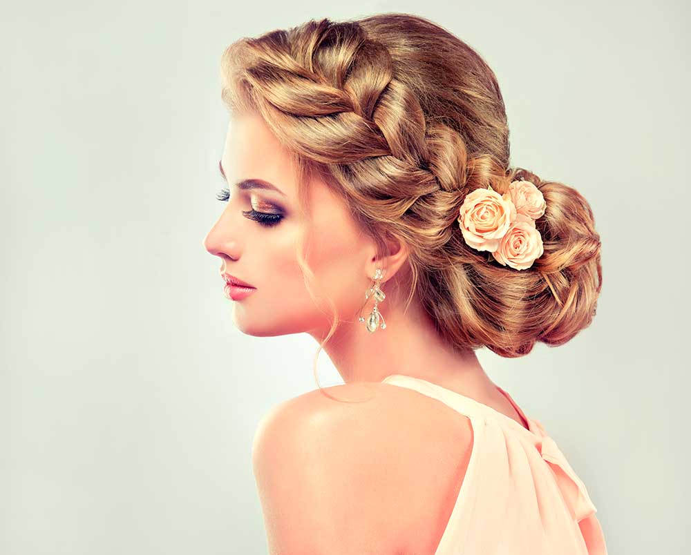 Греческий пучок формируют из красивых и ровных завитков или с помощью косы, которую заплетают с одной стороны и укладывают в виде ободка. В качестве дополнения используют атласные ленты или повязки. Такая прическа идеальна для торжественных мероприятий (свадьба, юбилей, выпускной и т. д.).