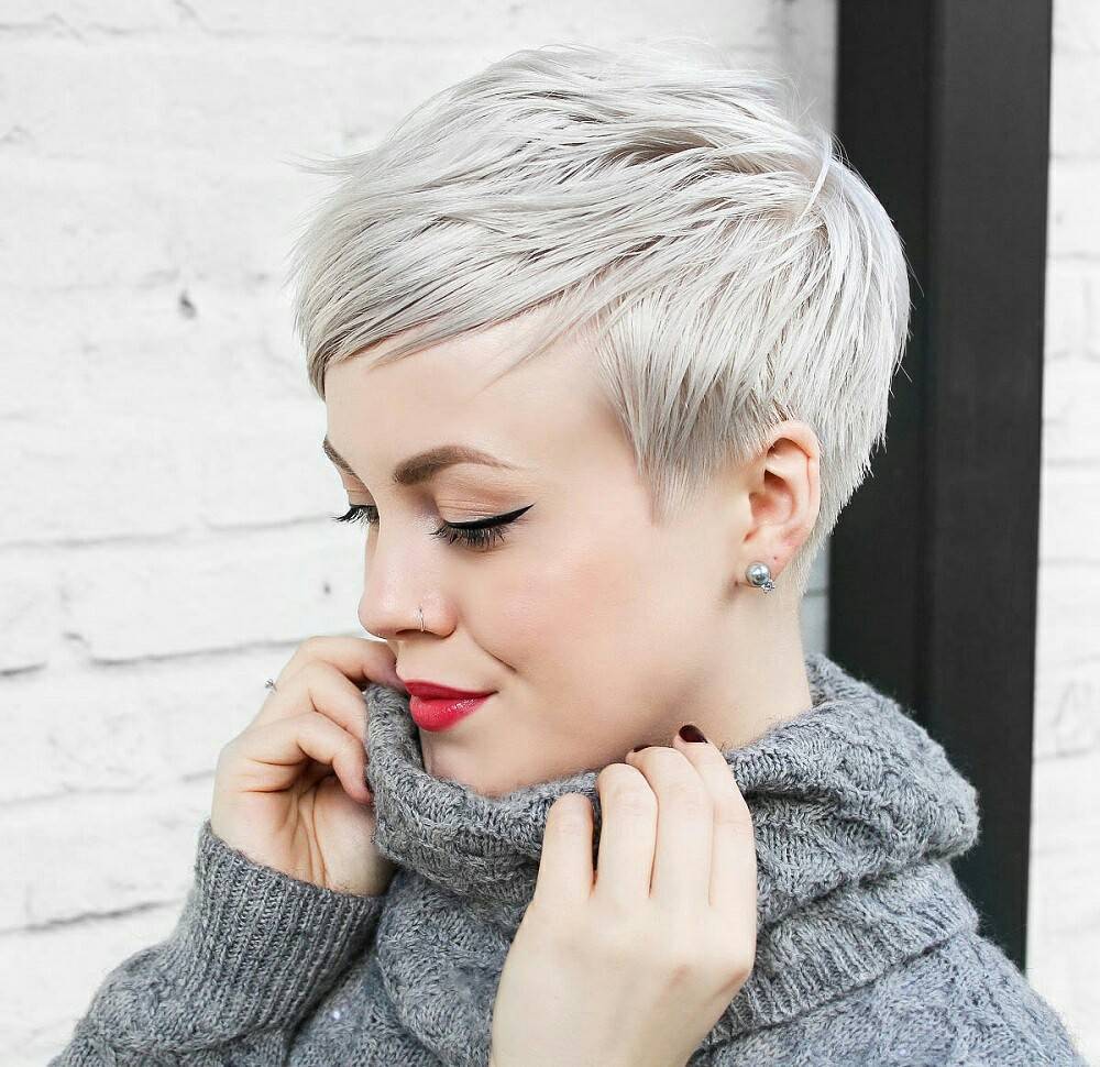 - Идеальная короткая стрижка для тонких волос предполагает мальчишеский затылок и слегка отросшие верхние пряди. Выбирайте косой пробор и такую же челку.